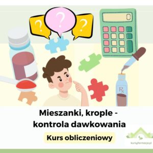 ZAPIS spotkania ONLINE dotyczący kontroli dawkowania w mieszankach i kroplach do użytku wewnętrznego. Szkolenie zawiera obliczenia zadań krok po kroku. Znajdziesz tu recepty dla osoby dorosłej, małego dziecka, korektę stężeń procentowych roztworów w mieszankach oraz korektę dawek bromków.
