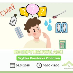 Nie daj się zaskoczyć na egzaminie zawodowym . Pamiętaj, że trudne obliczenia recepturowe są również wymagane na egzaminie zawodowym oraz w codziennej pracy w recepturze.